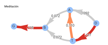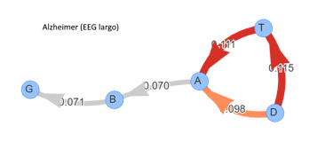 El peso del arco corresponde a su importancia dentro de la dinámica cerebral del grupo.