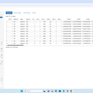 Cada fila se asocia a un sujeto, un grupo experimental/clinico y una ventana temporal.