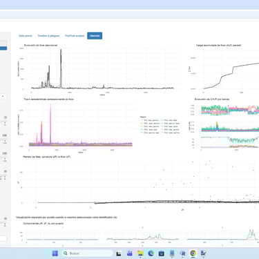 2. Comparación directa entre grupos. El usuario puede cargar varios CSV y comparar: